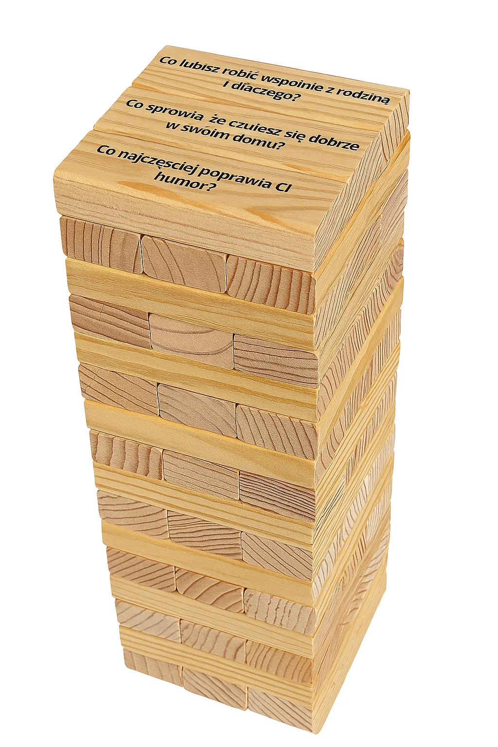 Zasady są proste – jak w klasycznej grze wieża, z tą różnicą, że na każdym klocku jest napisane pytanie lub zadanie do wykonania.