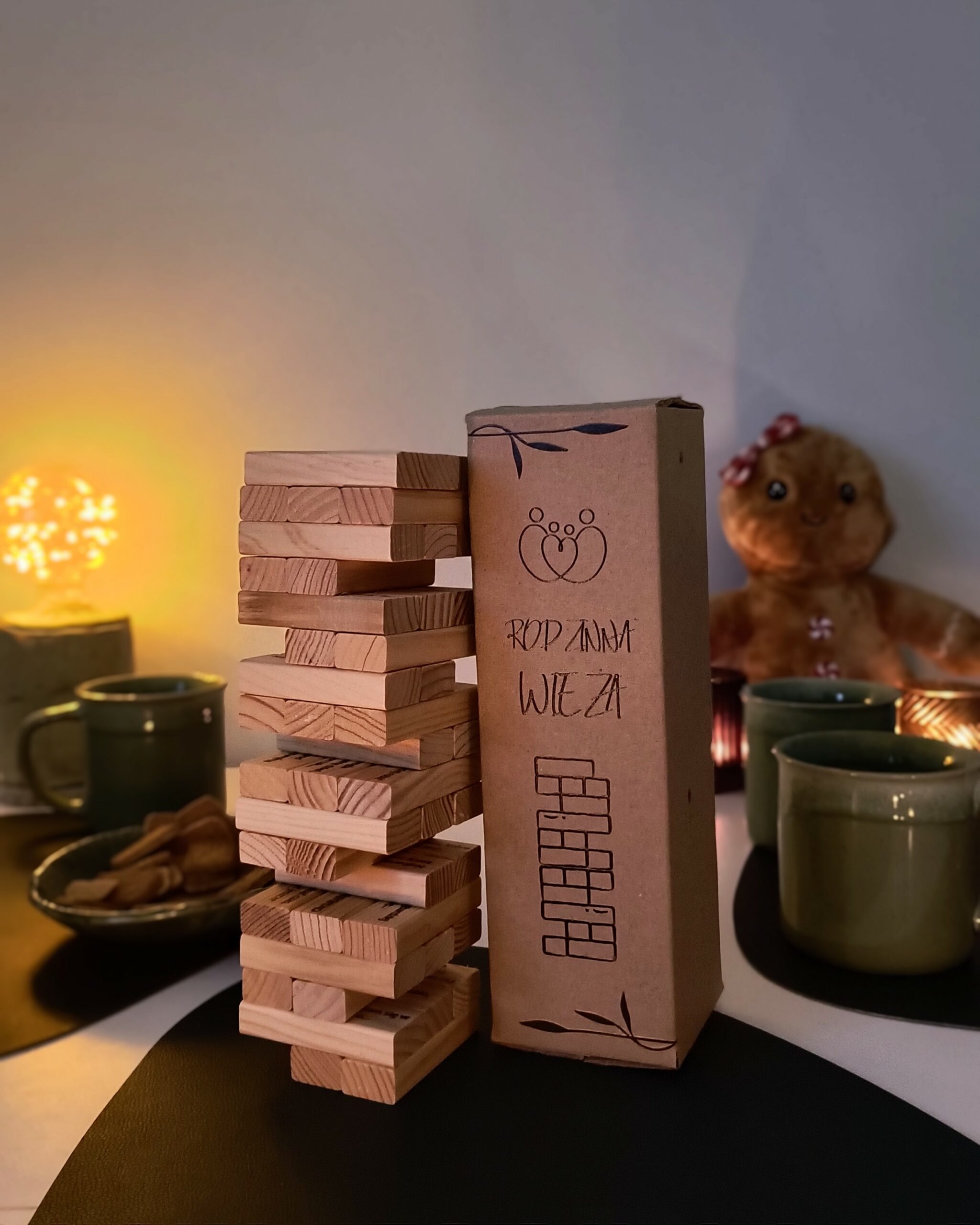 Rodzinna Wieża to wyjątkowa gra dla całej rodziny, stworzona przez psychologa, która łączy klasyczną zabawę w budowanie wieży z głębokimi rozmowami i wesołymi wyzwaniami. Jest to prosta i luźna gra, której celem jest wzmocnienie więzi i wypełnienie domu pozytywną energią.